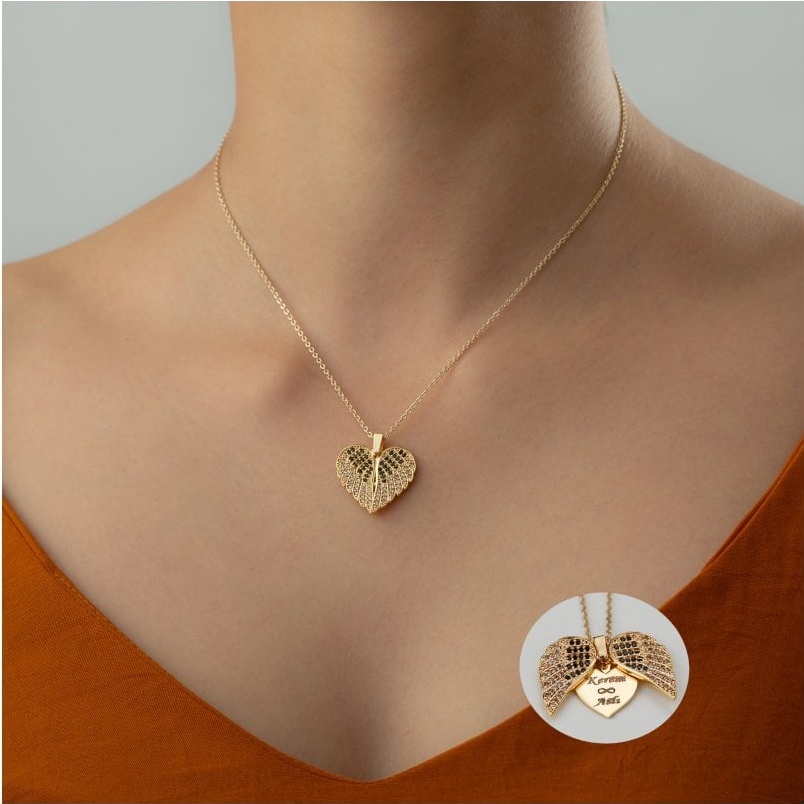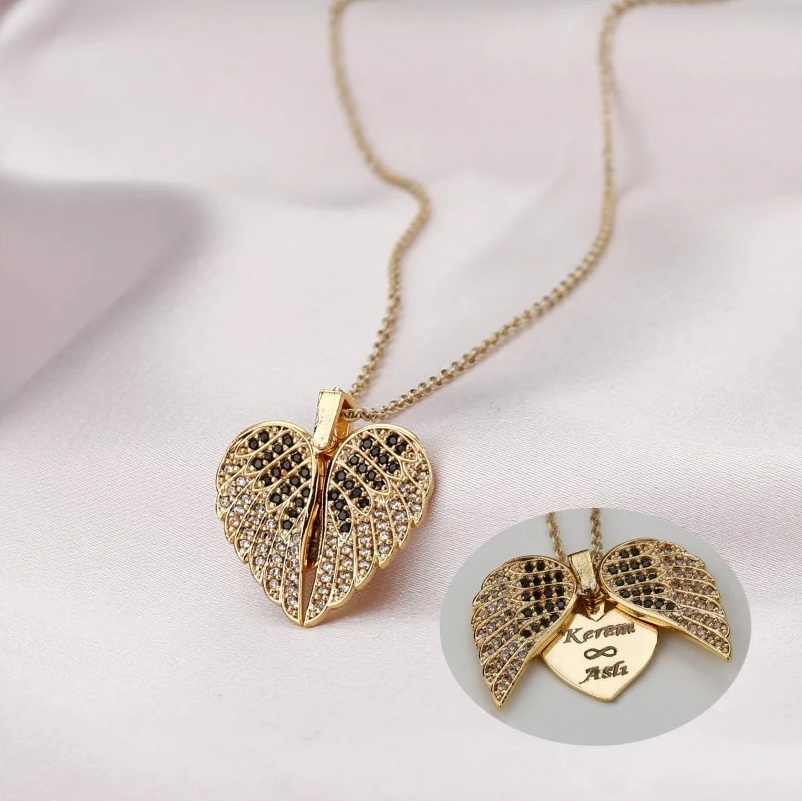 14 Ayar Altın Kaplama Özel Kutulu İsimli Kanatlı Kalp Kolye ❤️