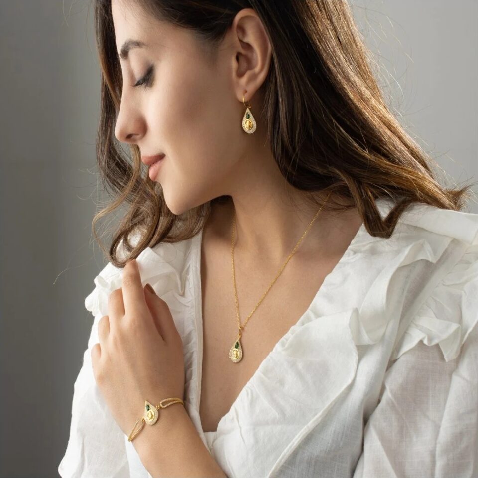 anahtarlı küpe kolye seti hem özel günler, hem günlük kullanıma uygun muazzam bir üründür. Anahtar figürü üzerine işlenen zirkon taşlar ışıltınıza ışıltı katacak, sizi özel hissettirecektir. Bu nadide set, zarafetinizi ve şıklığınızı tamamlayan özel bir dokunuş sunar. Sevdiklerinizi mutlu etmek için mükemmel bir hediye alternatifidir