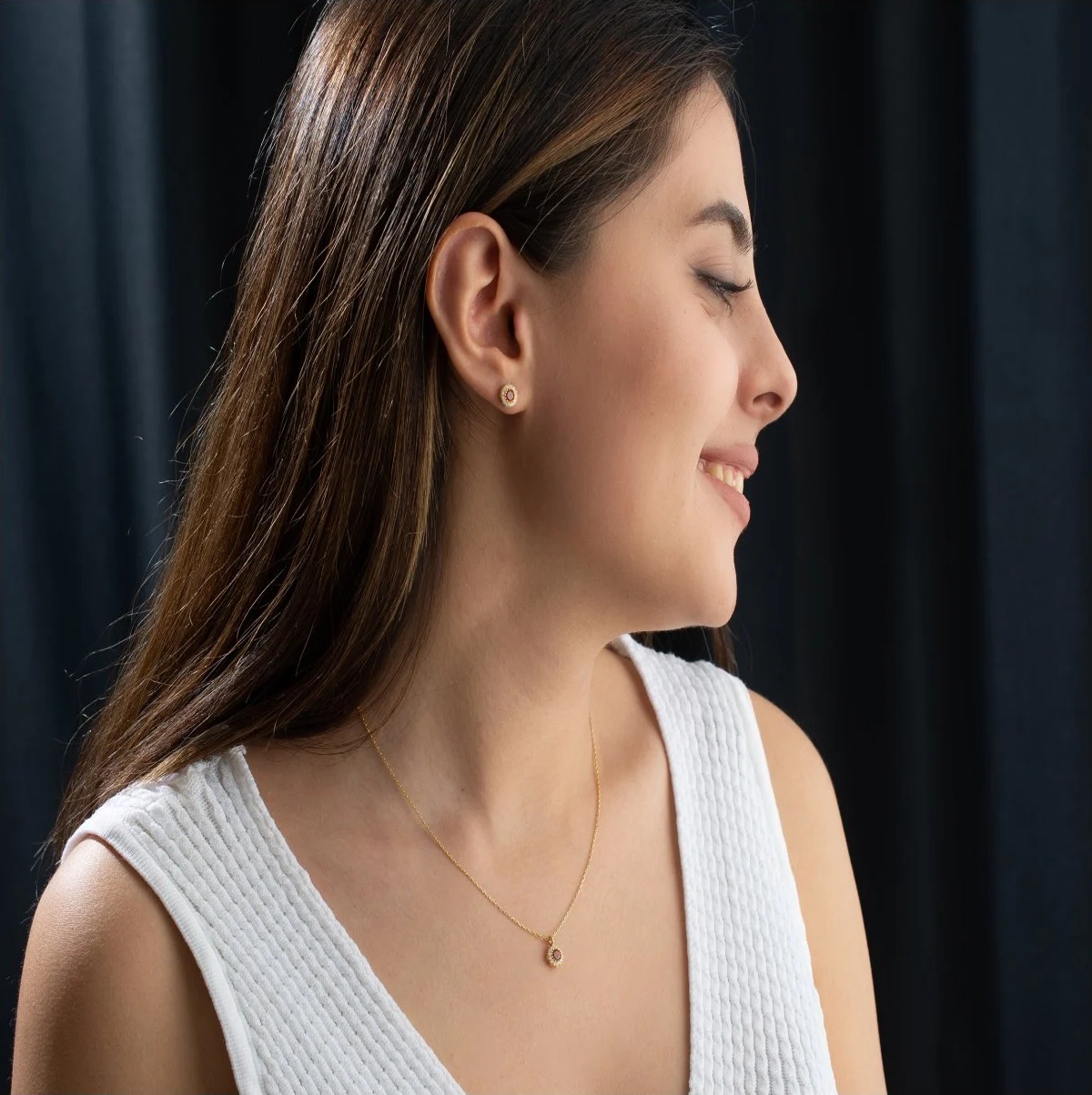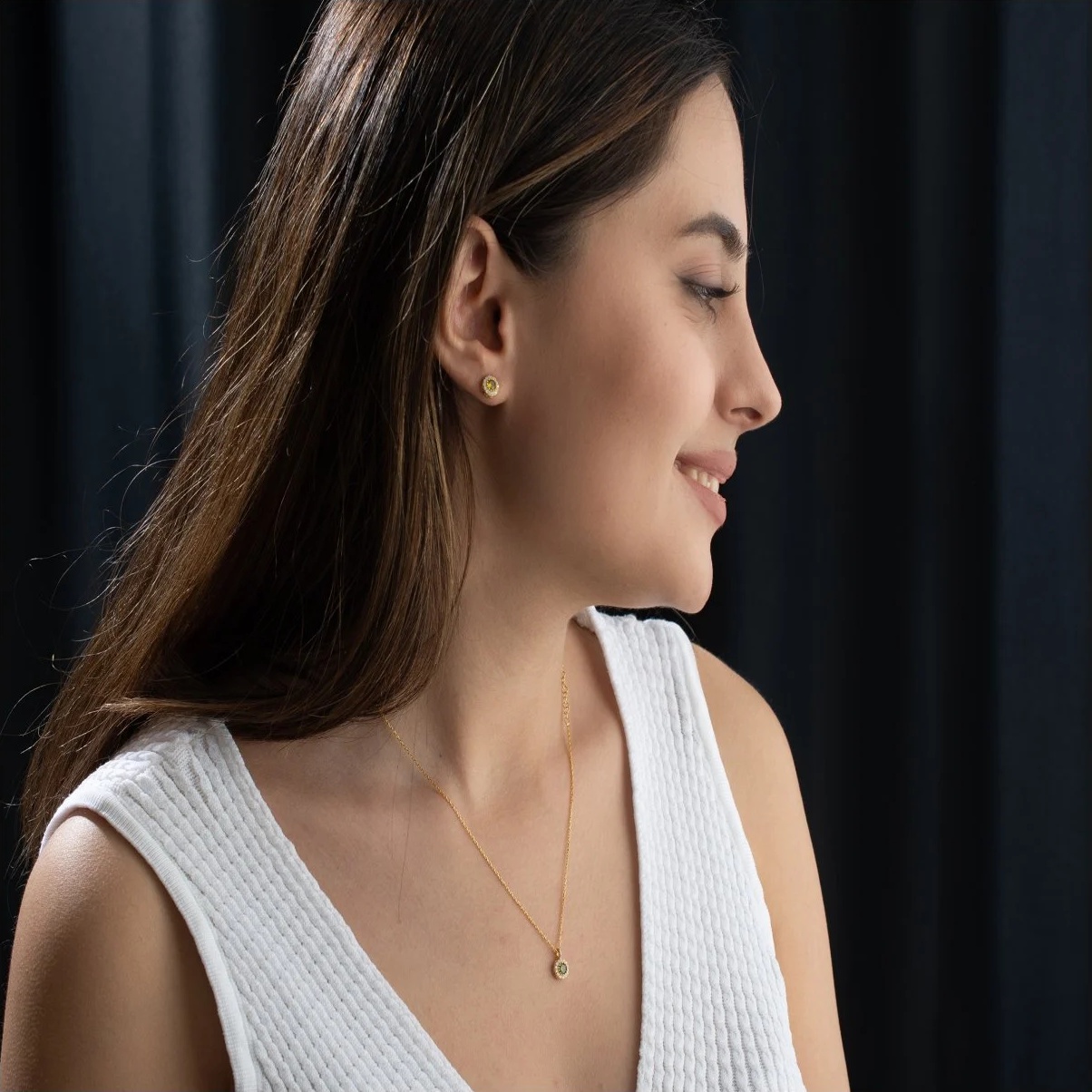 925 Ayar Gümüş Aylara Göre Damla Doğum Taşı Kolye – Küpe Seti 💎