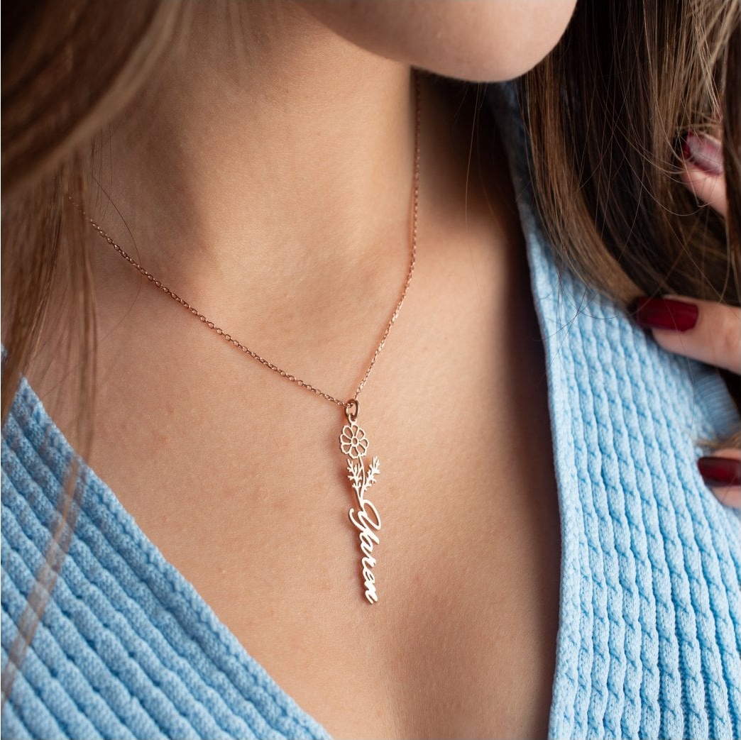 925 Ayar Gümüş Doğum Aylarına Özel Doğum Çiçeği İsimli Kolye 🌼