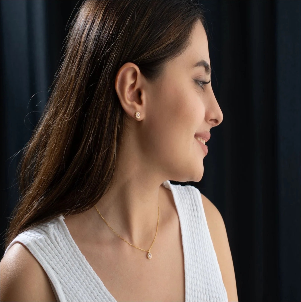 ✨ Gümüş zemin üzerine 14 ayar altın kaplama ile hazırlanmıştır.