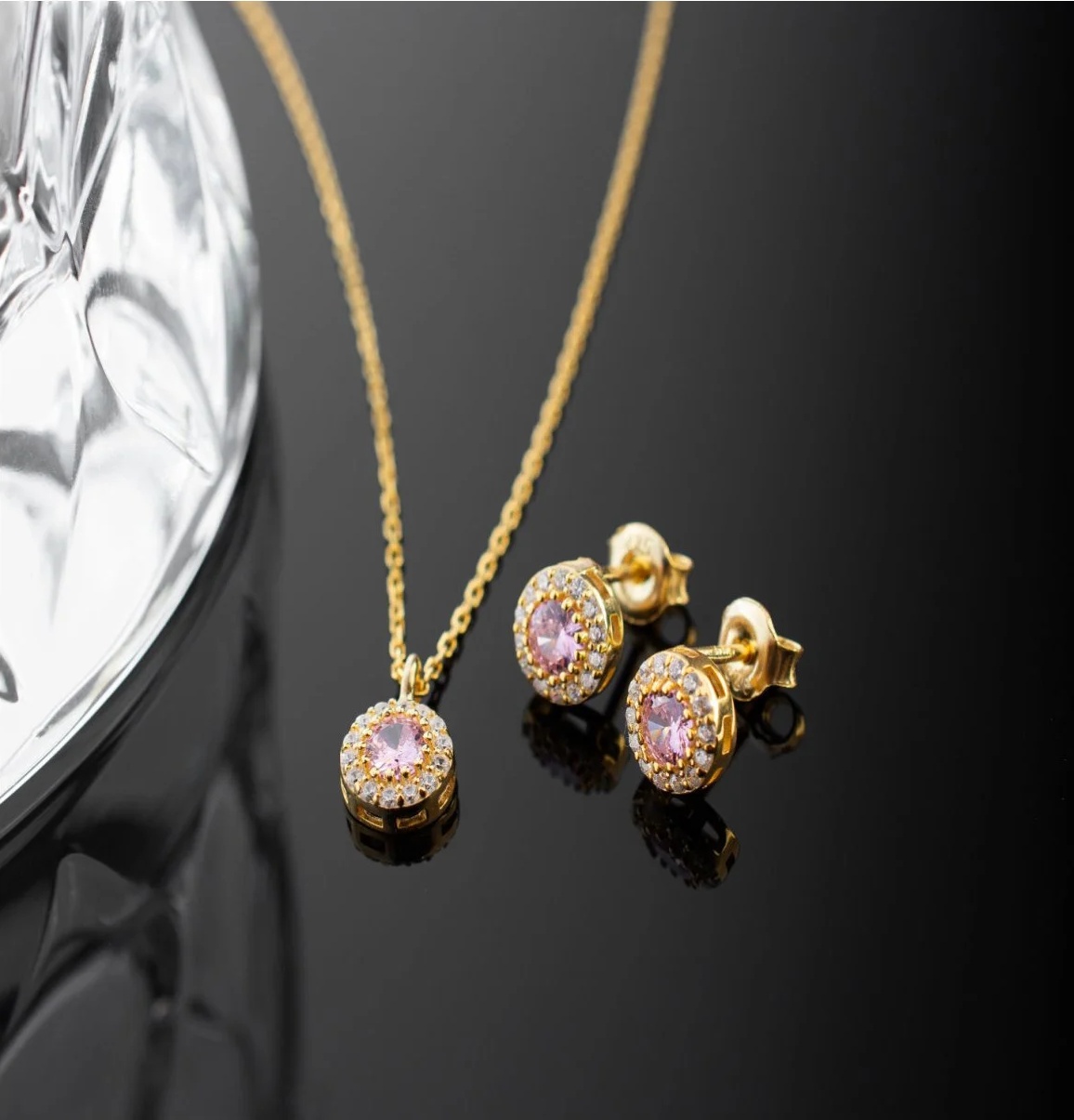 925 Ayar Gümüş Ekim Ayı Doğum Taşı ( Pink Tourmaline ) Kolye – Küpe Seti ✨