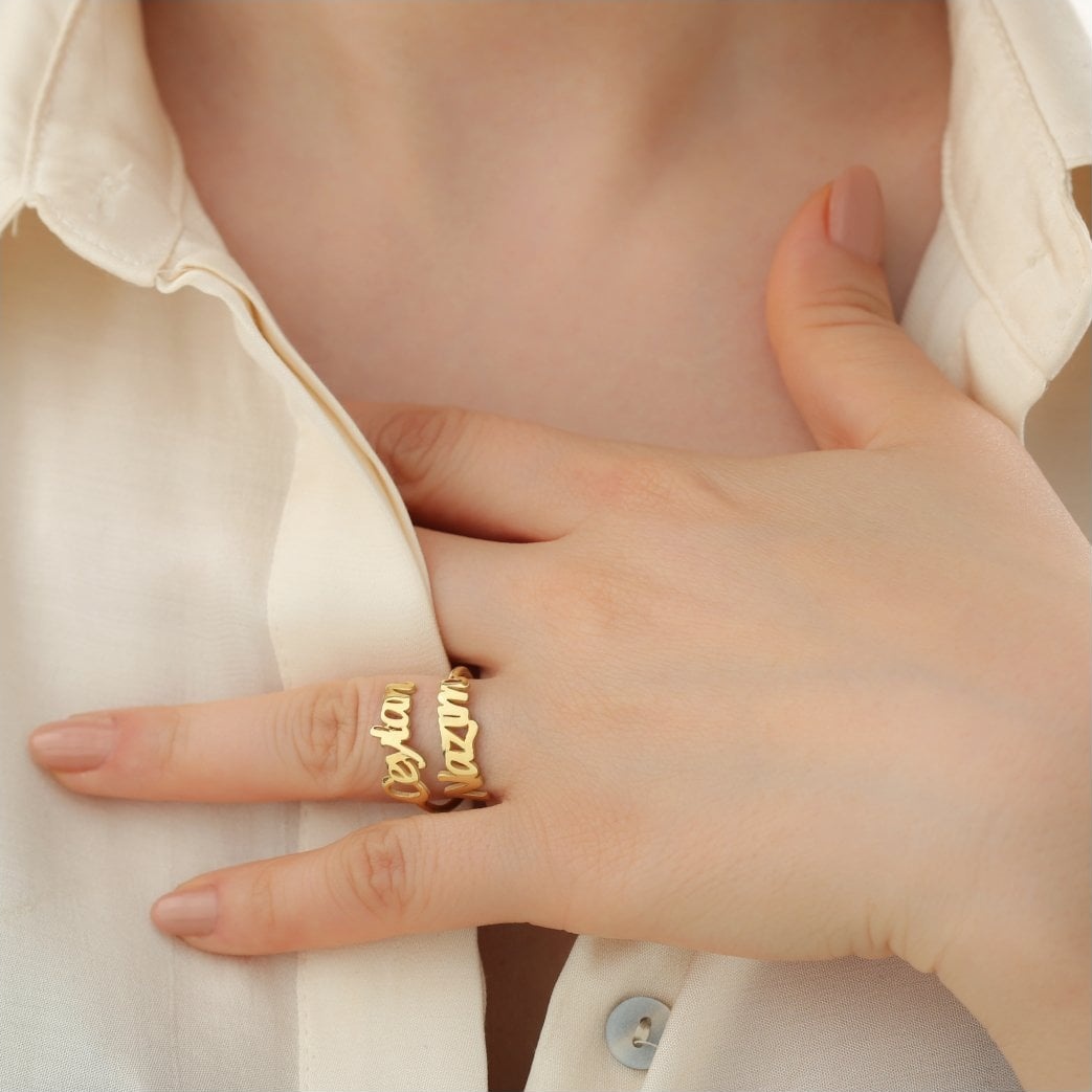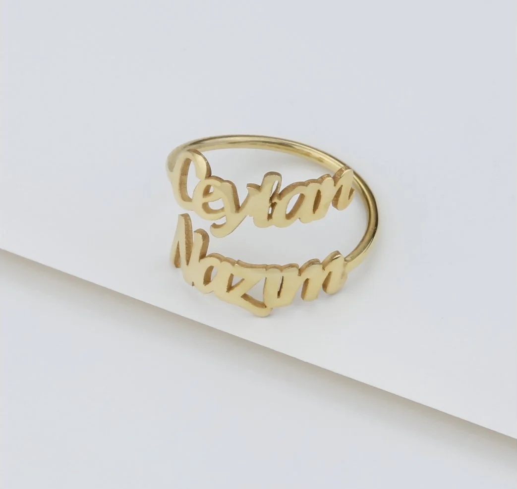 isimli yüzük dileğiniz özelleştirme ile üretimi sağlanan, özel günlerinizin vazgeçilmezi olacak muazzam bir üründür. 2 isim şeklinde tasarlanan bu şık tasarım belirttiğiniz özelleştirmeye göre üretilip tarafınıza iletilmektedir