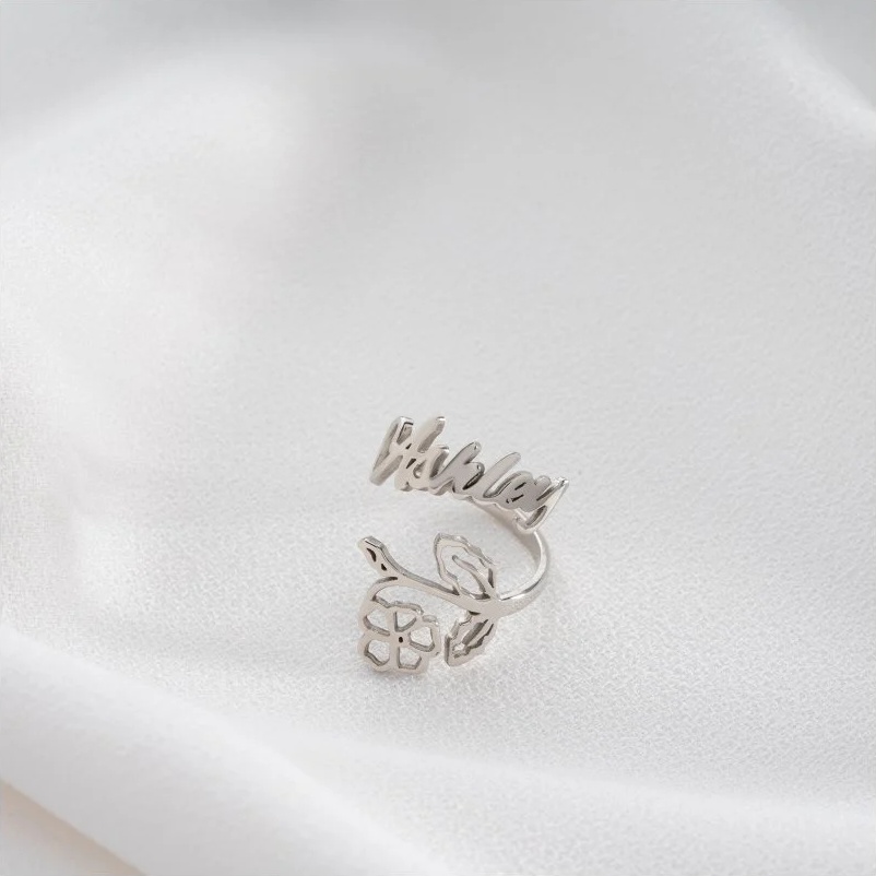 925 Ayar Gümüş Kişiye Özel Doğum Çiçekli İsimli Yüzük
