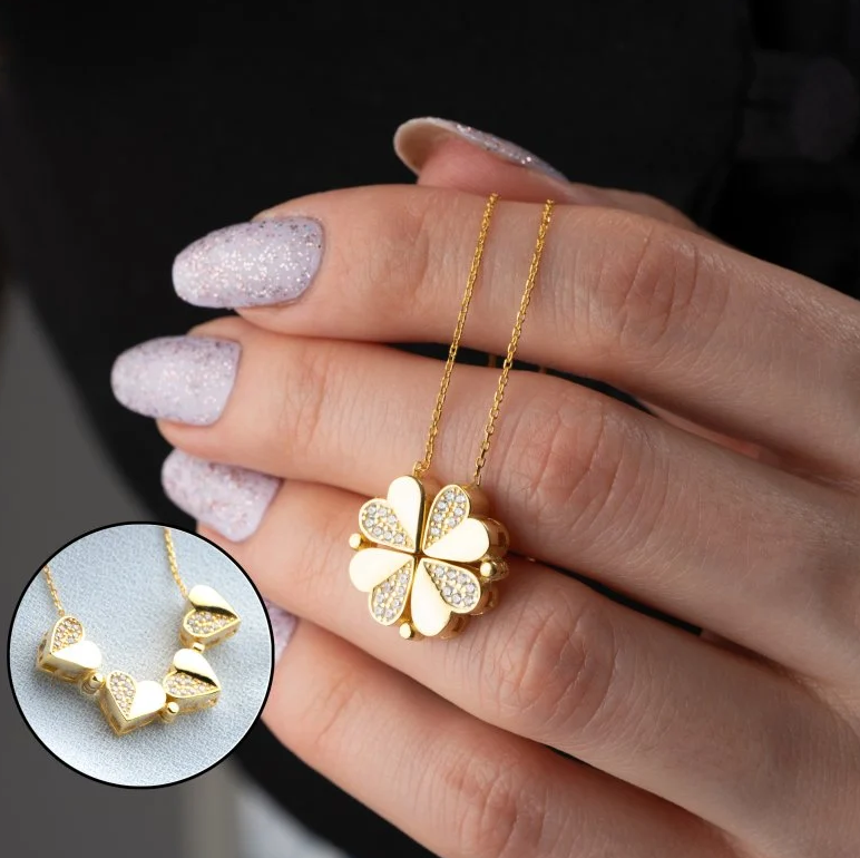 925 Ayar Gümüş Mıknatıslı Dörtlü Kalp Kolye
