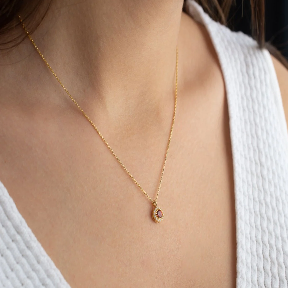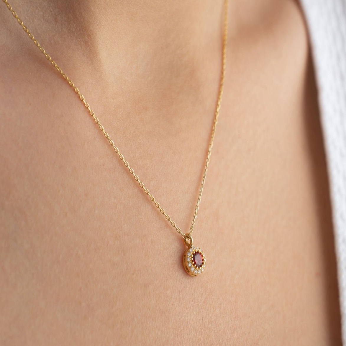 925 Ayar Gümüş Ocak Ayı Doğum Taşı (Garnet) Kolye – Celunna Özel Tasarım