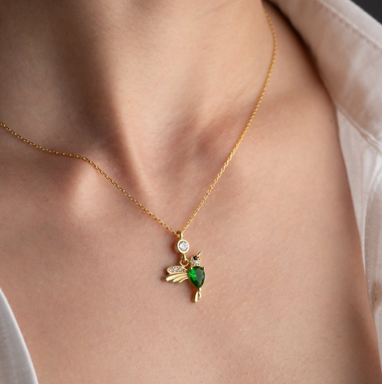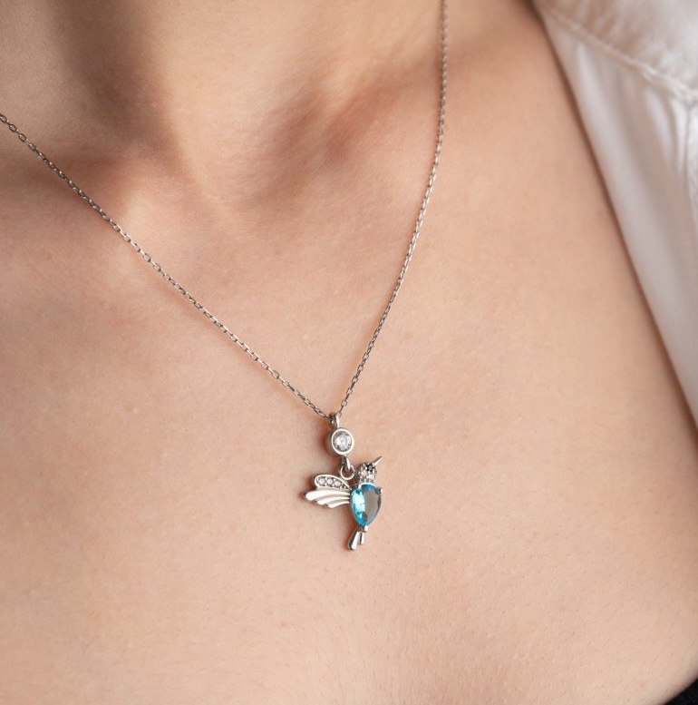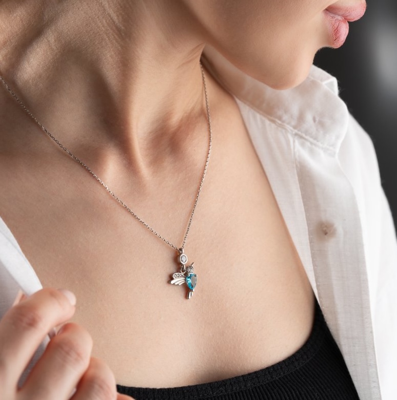 Farklı ve özgün tasarımıyla hem özel günlerde hem de günlük kullanımda tüm dikkatleri üzerinize çekecek 925 Ayar Gümüş Origami Kuş Kolye, stilinize modern ve anlamlı bir dokunuş katıyor. Sevimli kuş figürü, özgürlüğü ve zarafeti simgelerken; ışıltılı zirkon taş detayları ve parıltılı gümüş kaplamasıyla göz alıcı bir görünüm sunar.